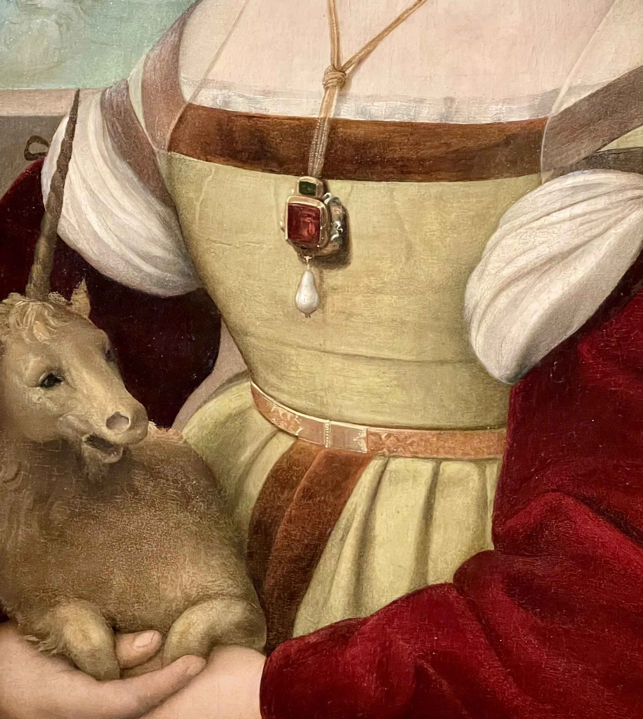 Mais si cette jeune fille nous convainc de sa pureté, son épaule dévoilée reste trop évocatrice pour certains : un peintre inconnu ajoute au 17ème siècle un manteau sur ses épaules et dissimule la licorne sous une roue, transformant la pauvre mariée en sainte Catherine d’Alexandrie! C’est seulement au cours d’une restauration en 1934 que la peinture fut attribuée avec certitude à Raphaël et la surpeinture expulsée, révélant la licorne. Et aussi, avant la licorne, Raphaël avait peint un petit chien. Comme quoi, avant Photoshop, on savait quand même retoucher.