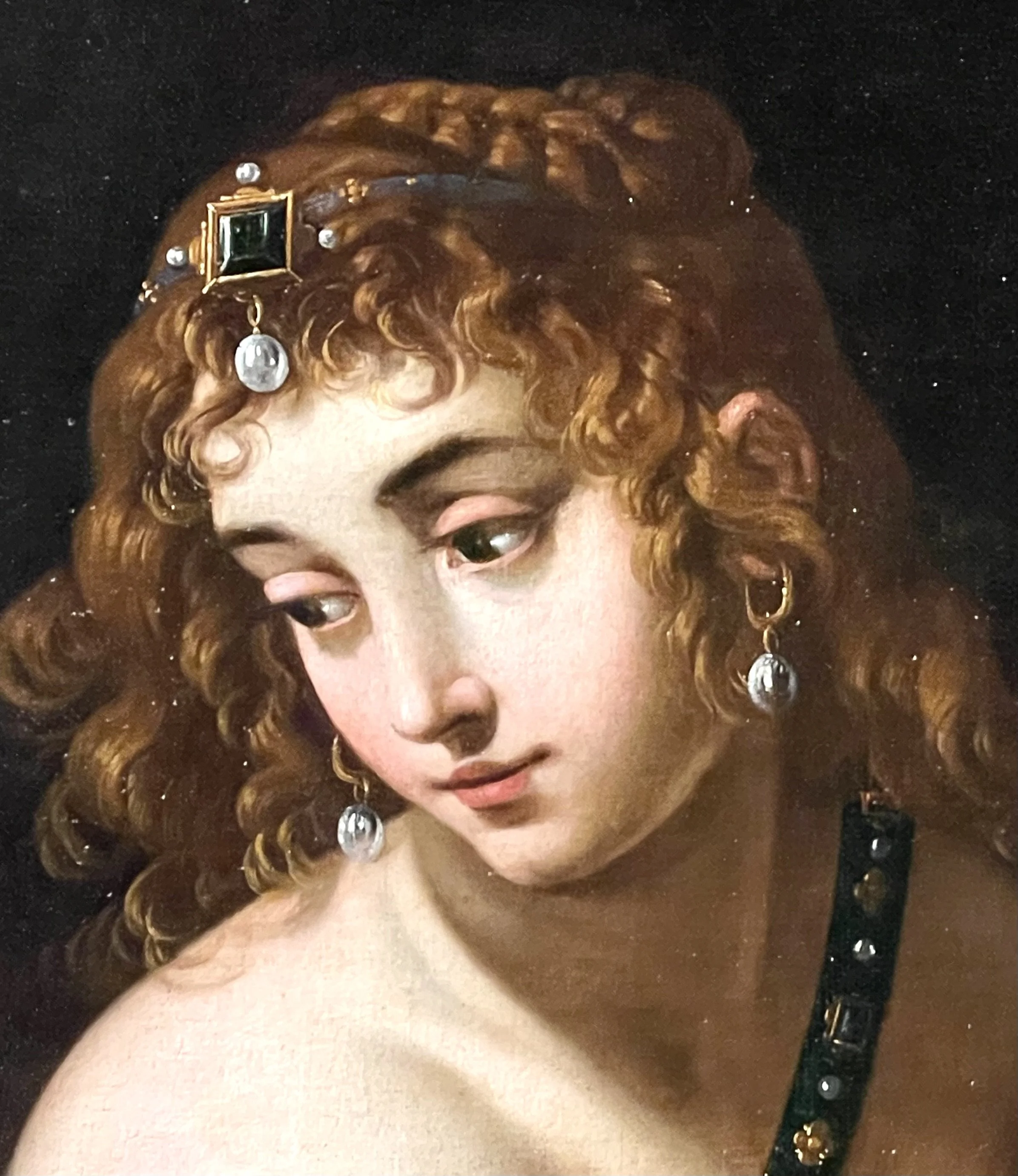 Après une salle qui retrace l’histoire de la villa Borghese et s’attarde un peu plus sur les personnages de Paul V et de Scipion Borghese, nous passons dans l’avant-dernière galerie, avec de grands formats qui en imposent. Admirez par exemple cette Judith de Baglione et ses boucles rousses rehaussées de gemmes étincelantes. On adore.